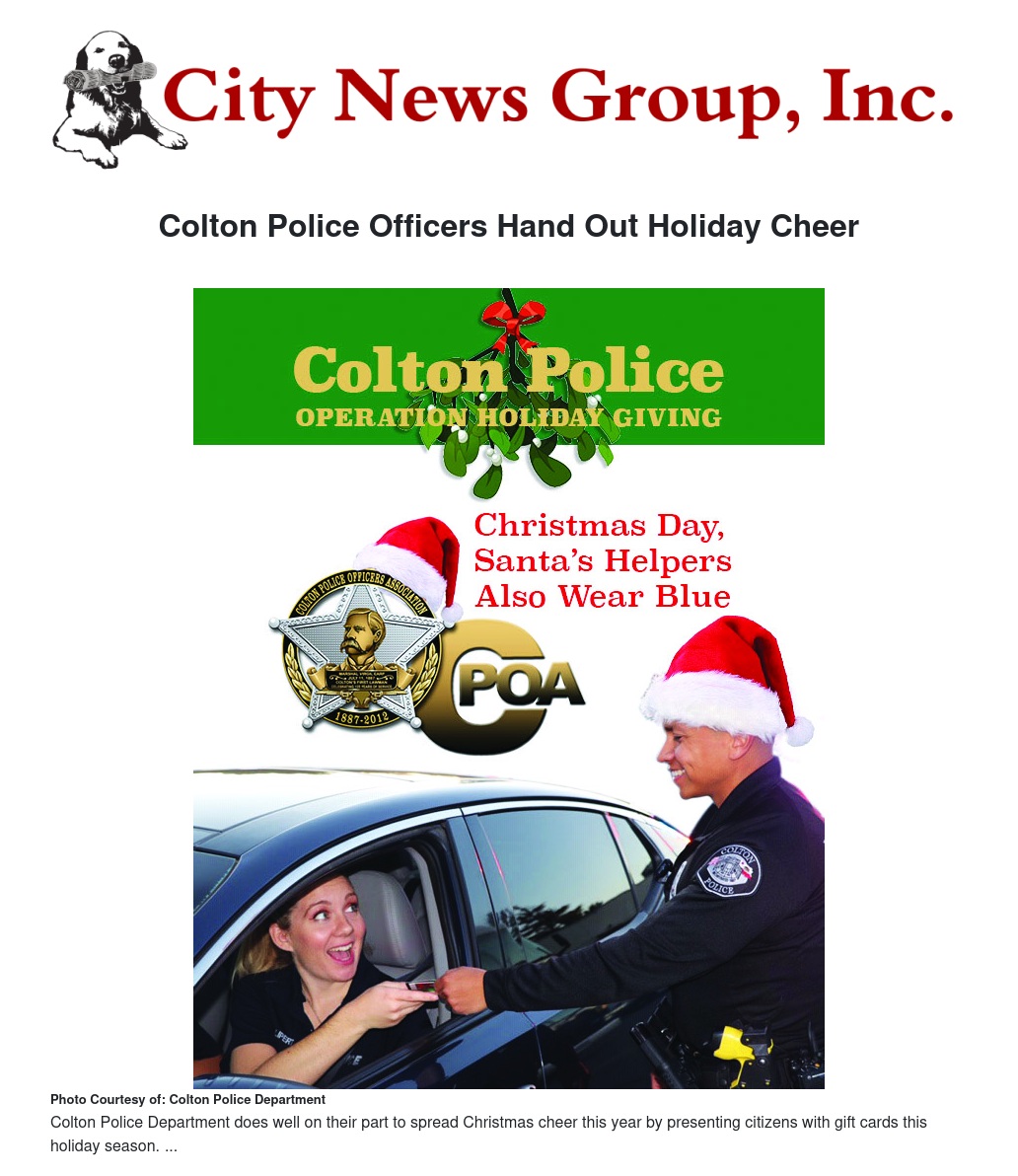 Colton Police Officers Hand Out Holiday Cheer by Rich Randolph - City News Group, Inc.
