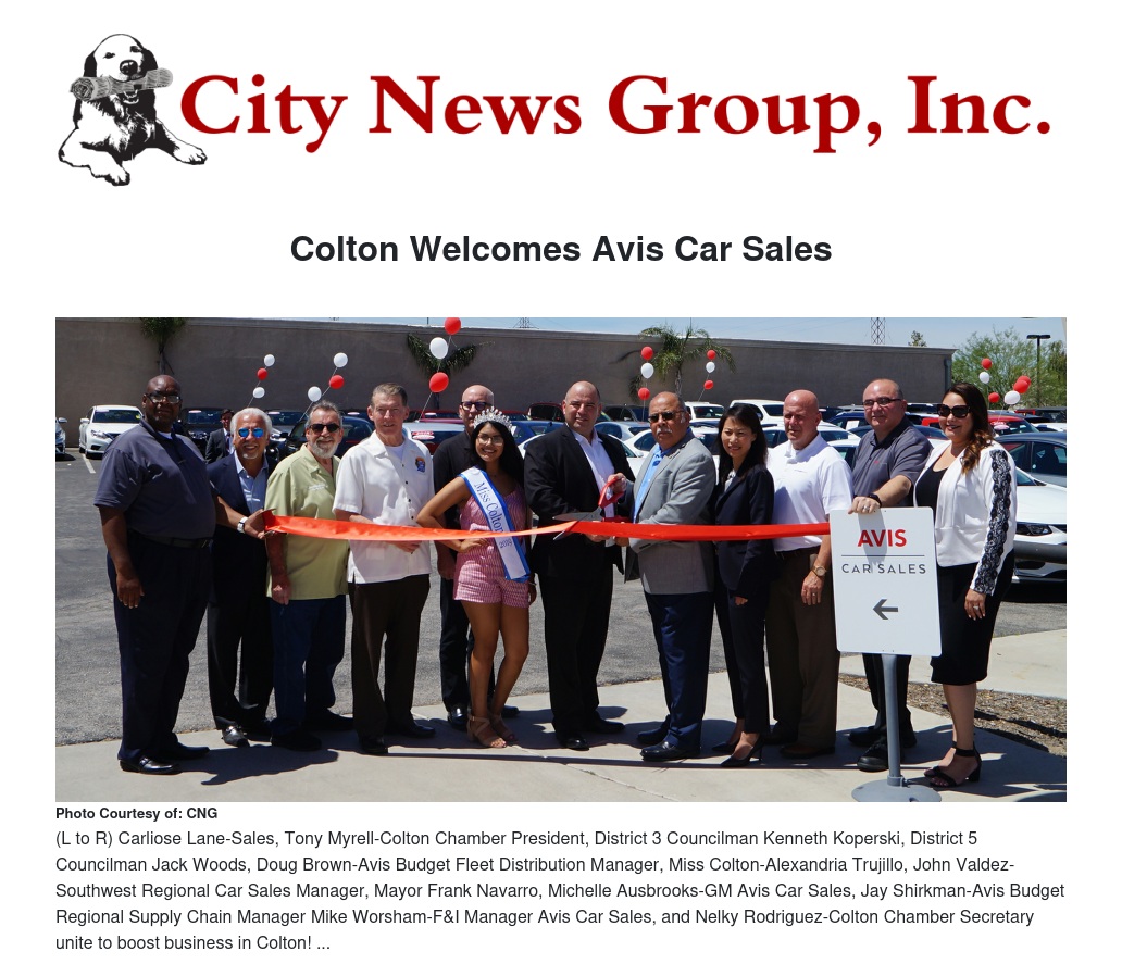 Colton Welcomes Avis Car Sales by M'Liss Silva - City News Group, Inc.