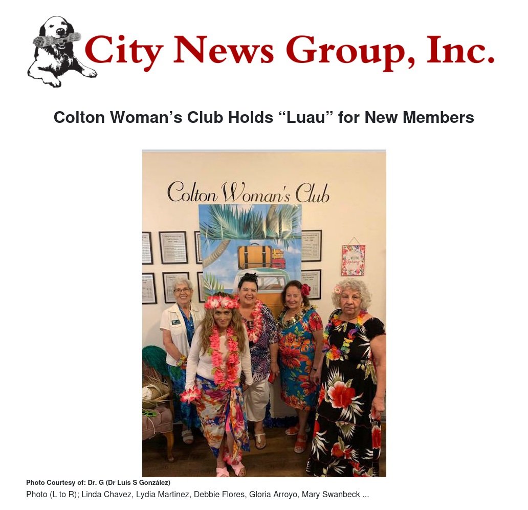 On Saturday, August 13, the Colton Woman’s Club held its annual membership drive in the form of a highly-decorative Luau. Over 50 women attended this event with the goal of having a fun social event, but at the same time inviting prospective new members to the clubhouse.