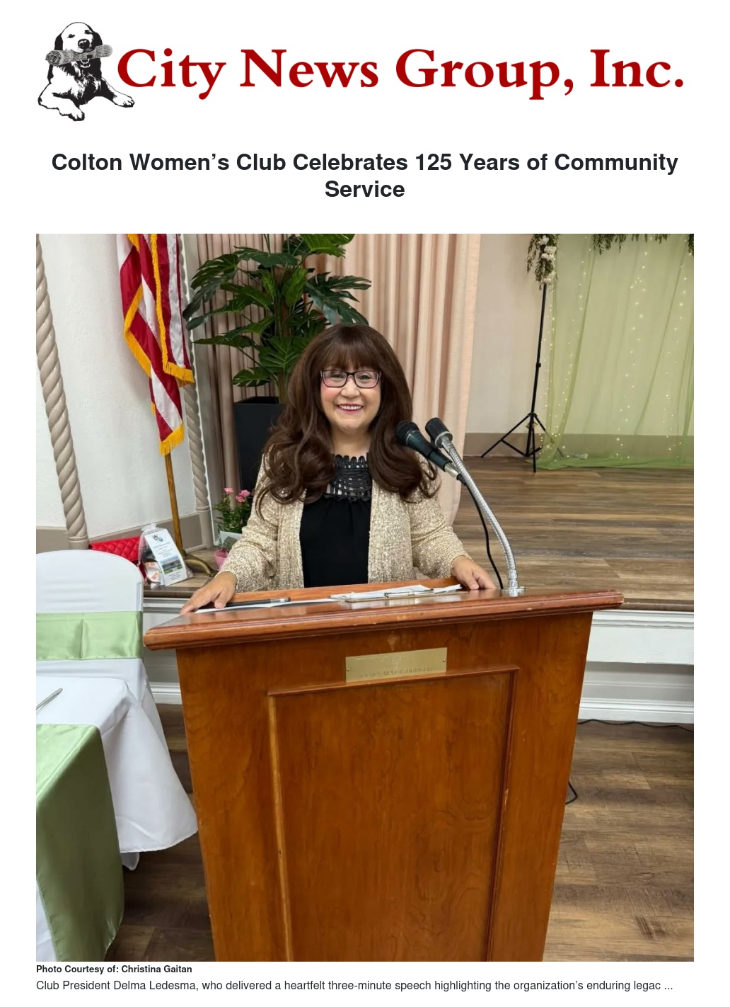 The City News Group extends heartfelt congratulations to the Colton Women’s Club on 125 years of outstanding service, leadership, and community dedication—and best wishes for many more years of continued success.