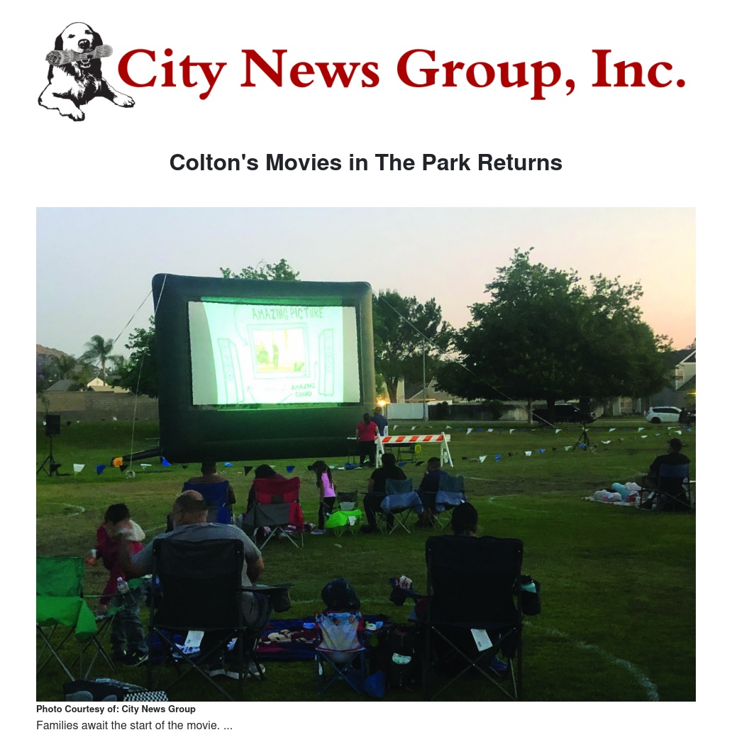 For now, though, the lineup for the rest of summer consists of a June 25th showing of “Dr. Seuss’ The Grinch," at Rich Dauer Park, followed by a July 16th showing of “Raya and the Last Dragon” at Veterans Park in Colton and a July 30th showing of “Spider-Man: Into the Spider-verse.," also at Veterans Park. All movies will begin at sunset and require registration at apm.activecommunities.com/colton.