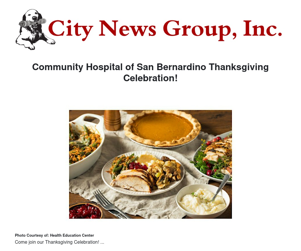 Community Hospital of San Bernardino will provide traditional Thanksgiving meals to