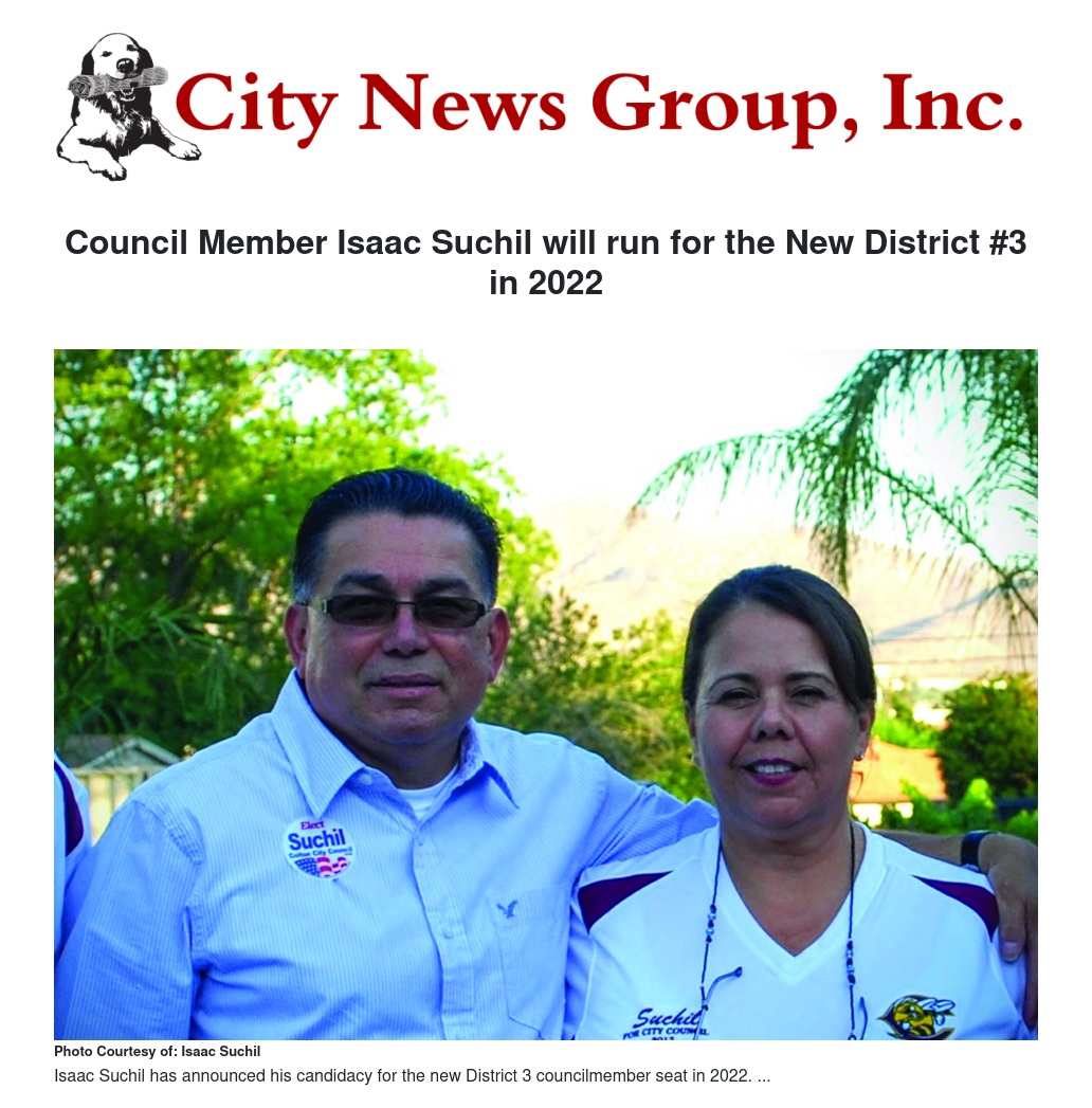 Council Member Suchil will soon be reaching out to the New District 3 residents for suggestions and input on what they would like to see in our City and new District 3.