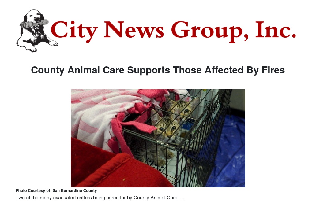 As the Bridge and Line Fires continue to impact our communities, San Bernardino County Animal Care has been actively involved in ensuring the safety and protection of animals displaced by the fires.