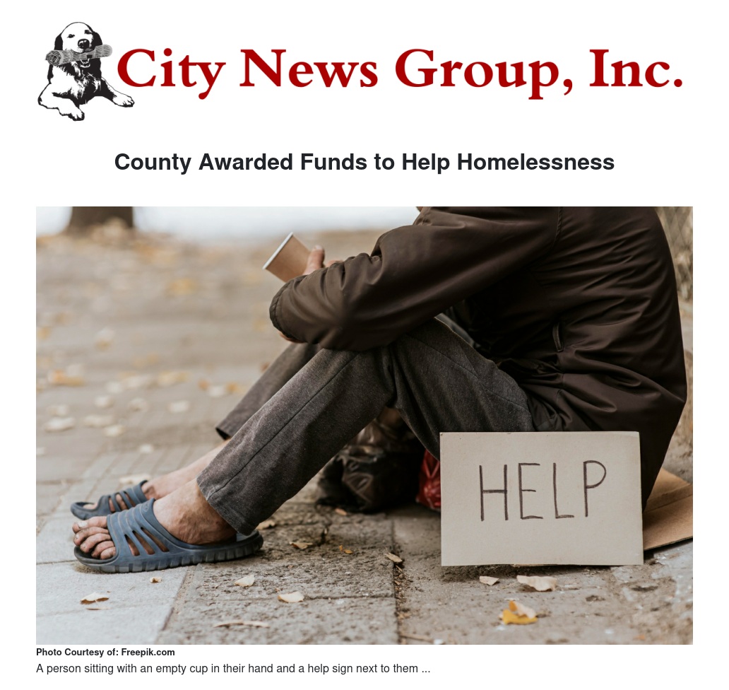 County Awarded Funds to Help Homelessness by William Cortez - City News Group, Inc.