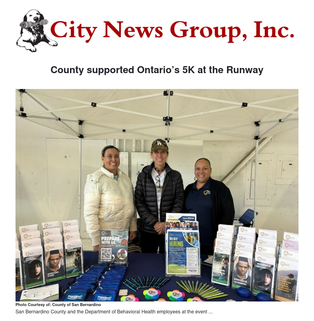Department of Behavioral Health Director Dr. Georgina Yoshioka participated in the 5K and commented, “Grateful for the opportunity to connect with our community in an active way. Events like this are important, so we can share our resources and demonstrate our support. Thank you to Ontario Airport for a wonderful event.”