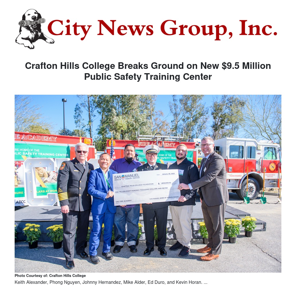 Construction is underway on Crafton Hills College’s (CHC) voter-approved and funded Public Safety Training Center, following a groundbreaking ceremony on January 20 in front of a crowd of more than 150.