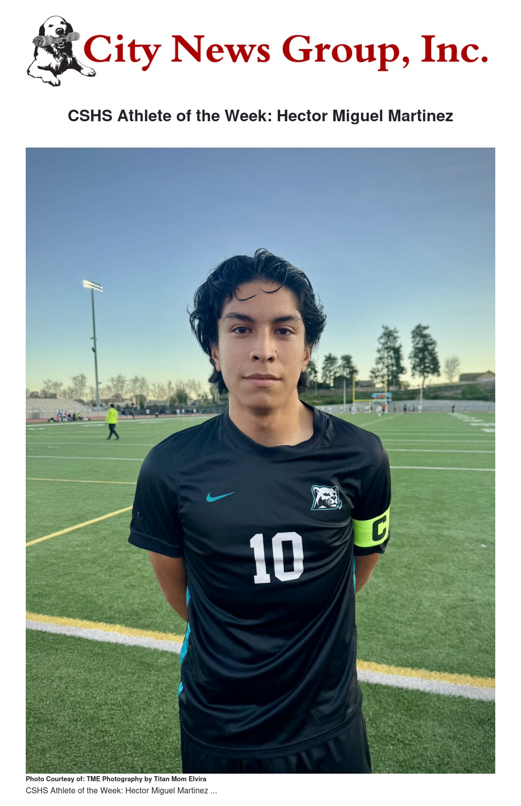 CSHS Athlete of the Week: Hector Miguel Martinez by Titan Mom Elvira - City News Group, Inc.
