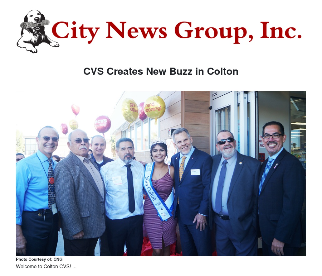 Once again the Colton community is a buzz with excitement! The latest addition to the booming economy has opened! CVS’ newest store is a long awaited dream for some and a welcome addition for all. Conveniently and strategically located next to Arrowhead Regional Medical Center, the store is sure to be a success. Colton’s Mayor Frank Navarro, along with Councilmembers David J. Toro, Mayor Pro Tem Ernest R. Cisneros, Kenneth Koperski, Dr. Luis S. Gonzalez, Jack R. Woods, and Christy Elshof Economic Development Project Manager, along with Miss Colton Lexie Trujillo were on hand to see this great addition to the city come to fruition.
