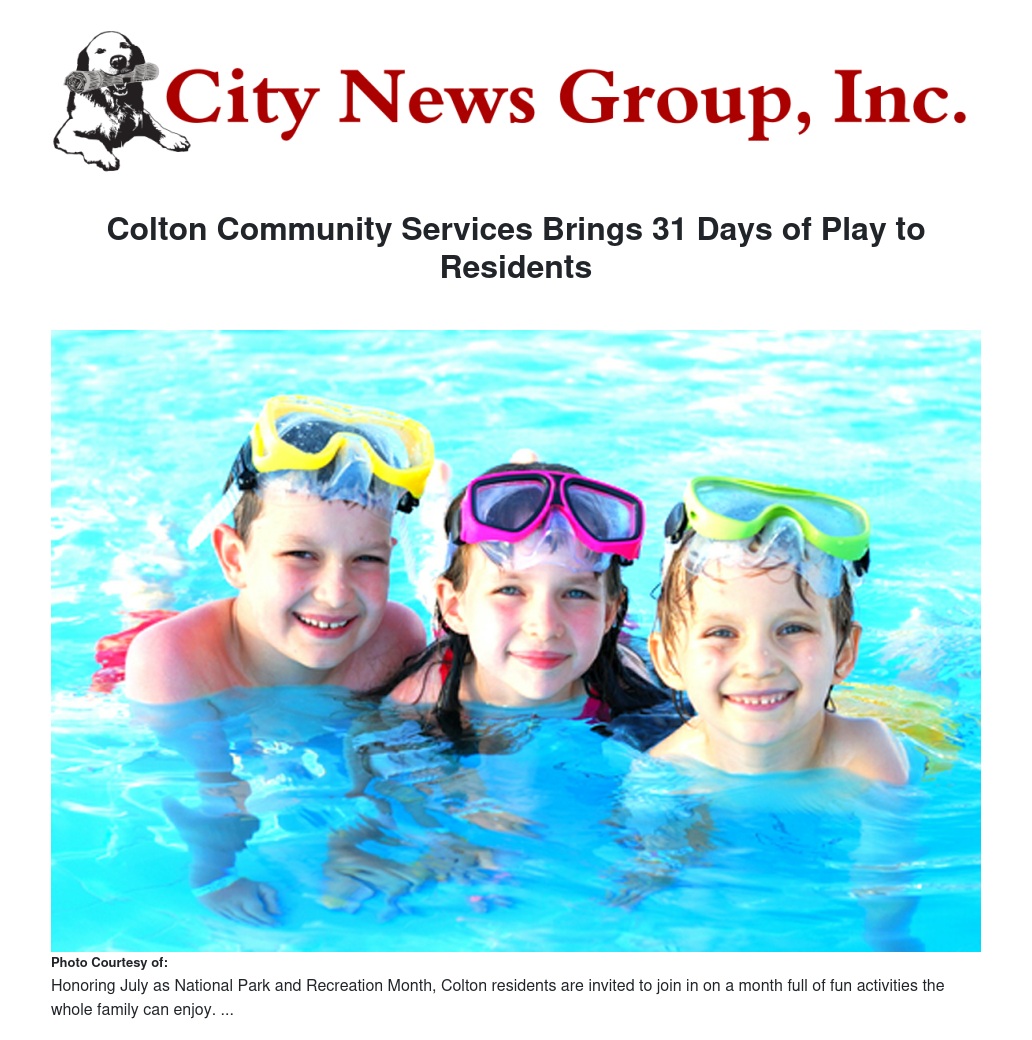 In celebration of July as National Park and Recreation Month, Colton Community Services is presenting its 31 Days of Play.