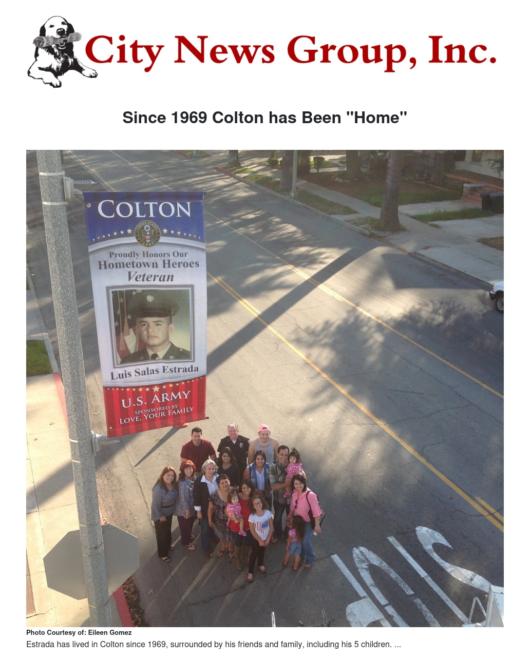 Colton has recognized a local resident and Vietnam Veteran who, since October of 1969, has called Colton home. For his service to the country and community, the City of Colton, honored this man with a military banner hung on a light post on La Cadena Drive.