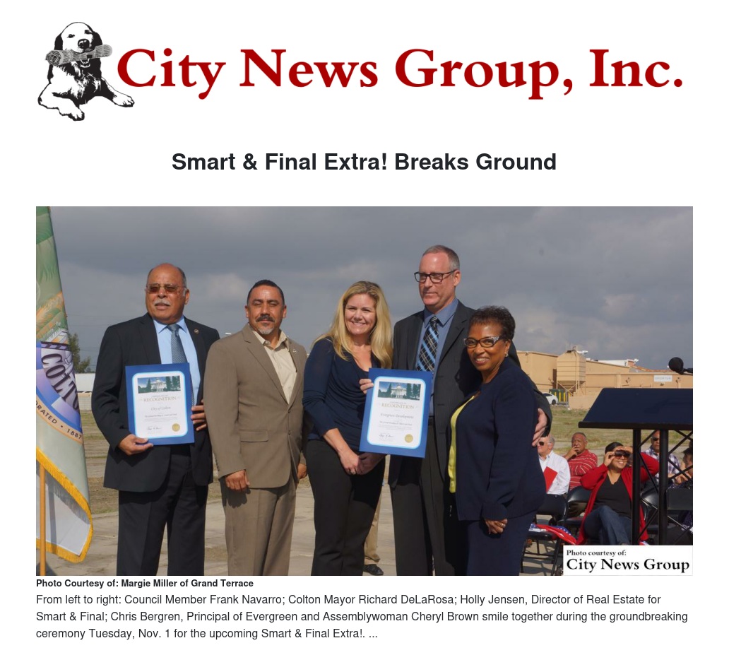 COLTON>> Residents, community leaders and numerous members of the Colton community came together Tuesday, Nov. 1 to celebrate the groundbreaking of Smart and Final Extra! on the corner of Colton Avenue and North Mount Vernon Avenue in Colton.