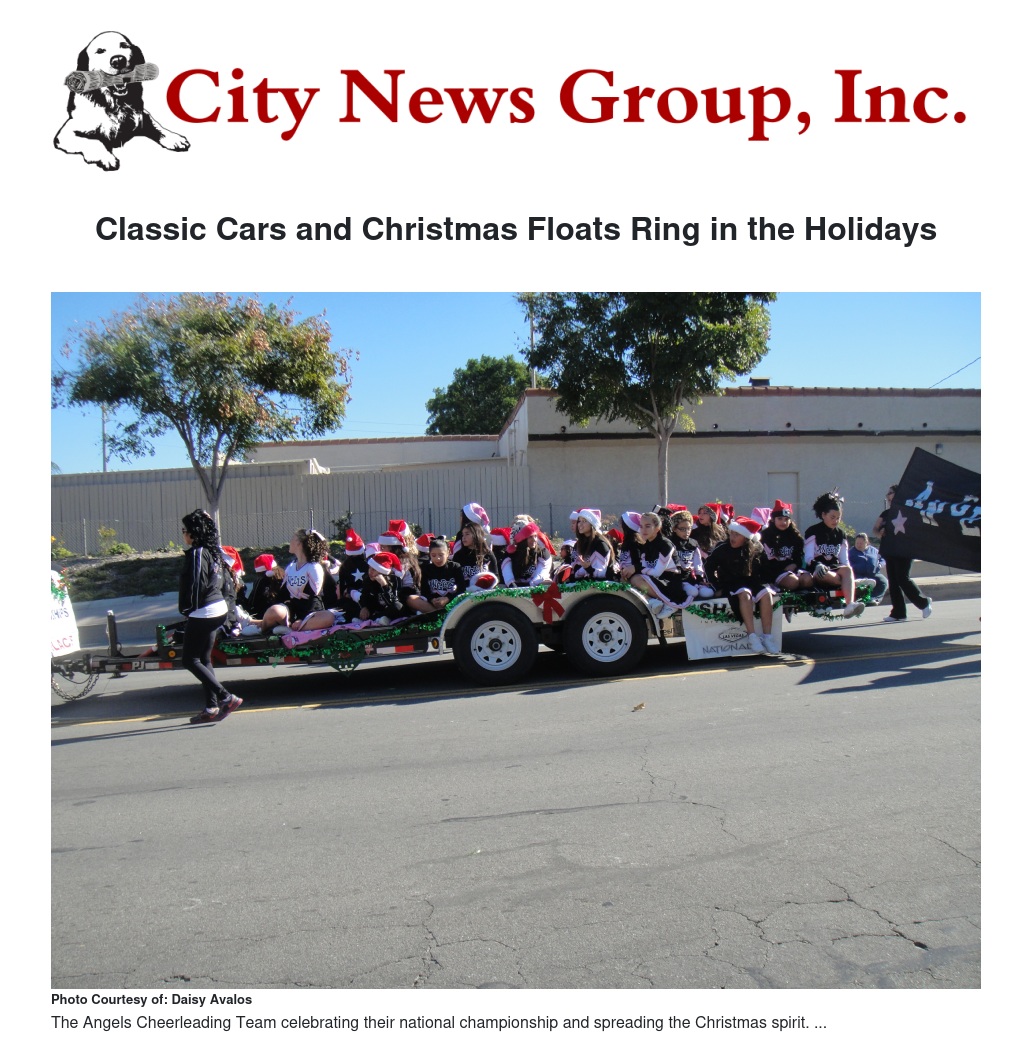 The Colton Christian Church placed a gospel band on their float while Colton High School showed their Colton pride in a gold and burgundy display accompanied by music and their mascot handing out candy to the children. The Angels Cheer Team of Montebello also made an appearance, celebrating their recent national championship in Nevada, and Reid Park Cheerleading walked the whole parade as participants spread holiday cheer down La Cadena Drive.