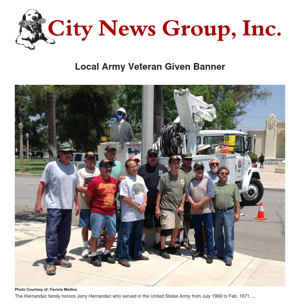 Local Highgrove resident, Jerry Hernandez, was recently honored with a banner in Colton as part of the Colton Hometown Heroes Military Banner Program. The new banner was installed on July 2 and is located on F Street and La Cadena Drive next to his father-in-law, Paul Brown’s military banner.
