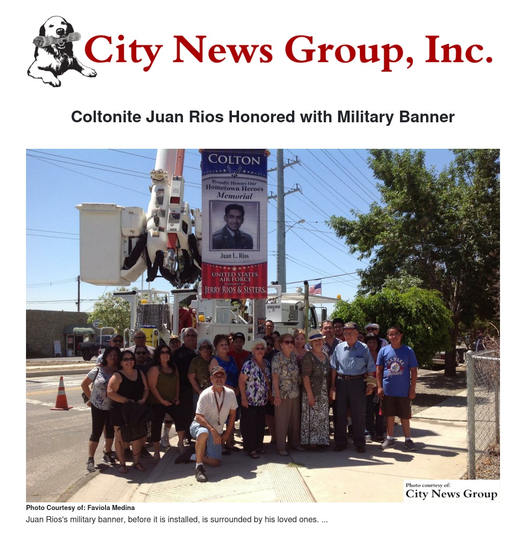 The late Coltonite Juan Rios was recently honored with a military banner installation ceremony on June 16 by the city and his loved ones.