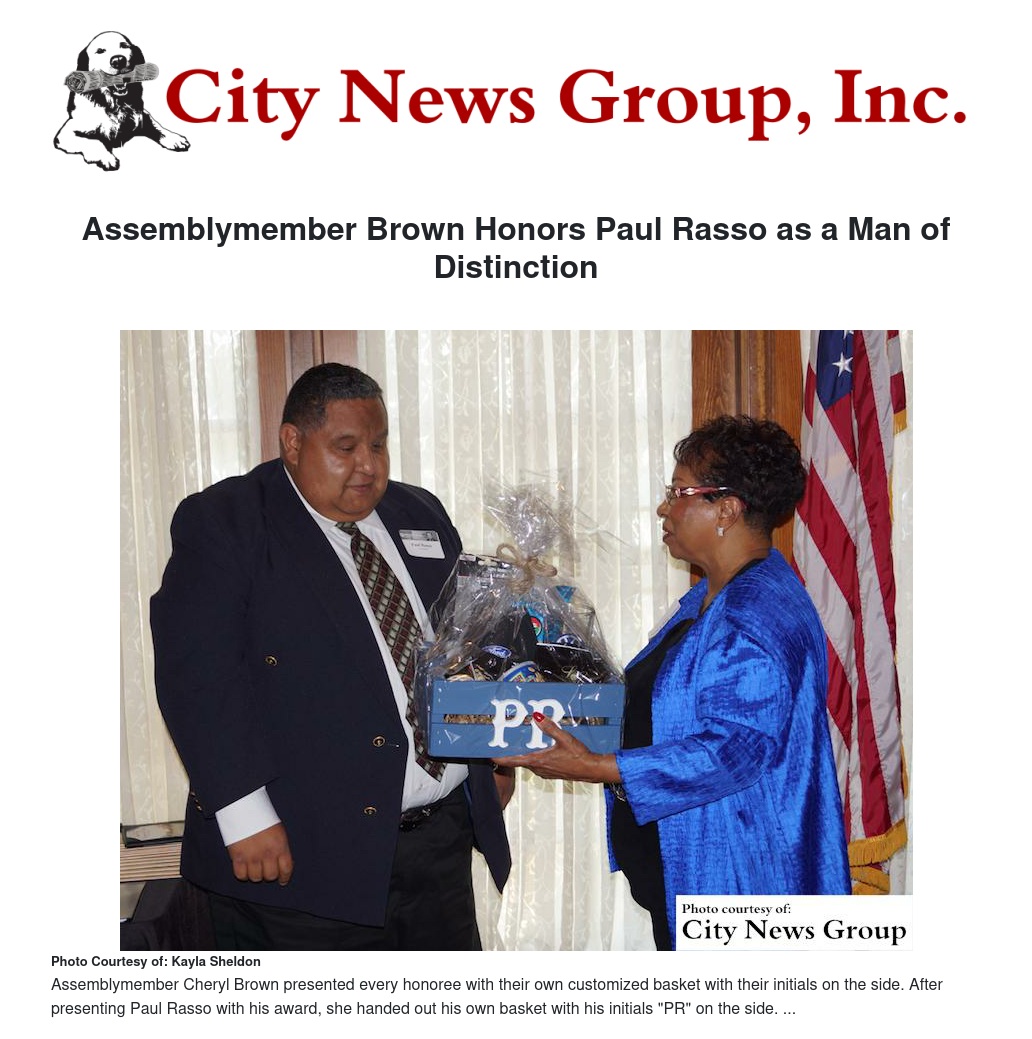 Assemblymember Brown Honors Paul Rasso as a Man of Distinction