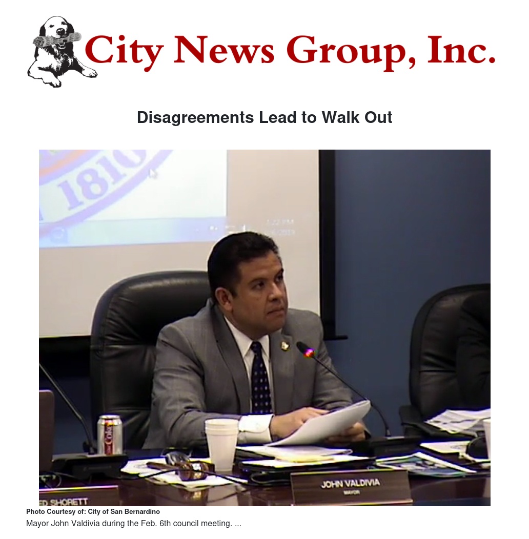 On February 6, 2018 the city council meeting of San Bernardino was held, but it did not last long. After three San Bernardino Councilmen left the meeting, they were forced to adjourn and reconvene the following Monday, February 11th.