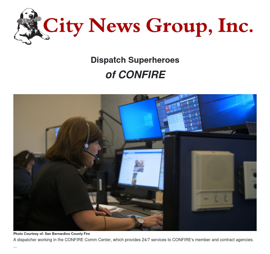 CONFIRE's dispatchers have a special superpower of being the real first responders via telecommunications. Each year, CONFIRE dedicates the second full week of April to those who serve as public safety dispatchers and communications personnel. San Bernardino County Fire honors the dedicated dispatchers of the Consolidated Fire Agencies of San Bernardino County (CONFIRE) who serve as the first responders when county residents and visitors dial 9-1-1.