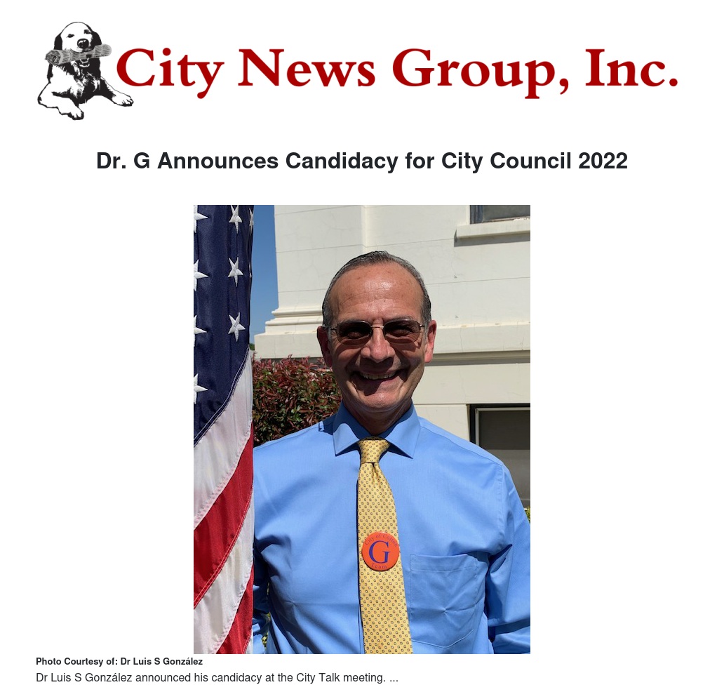 Given the fact that our city and county are slowly opening up, and the fact that the next election will be unique, Dr. G decided to get an early start in order to make sure the communication is flowing. “That’s a priority for me,” explains Dr. G. The unique election aforementioned, is that in 2022, our City will change to four council districts, and as such, the full City Council will have five members, including four council members and the Mayor. “We have lots of work to do to make this a smooth transition,” as Dr. G thoughtfully explains.