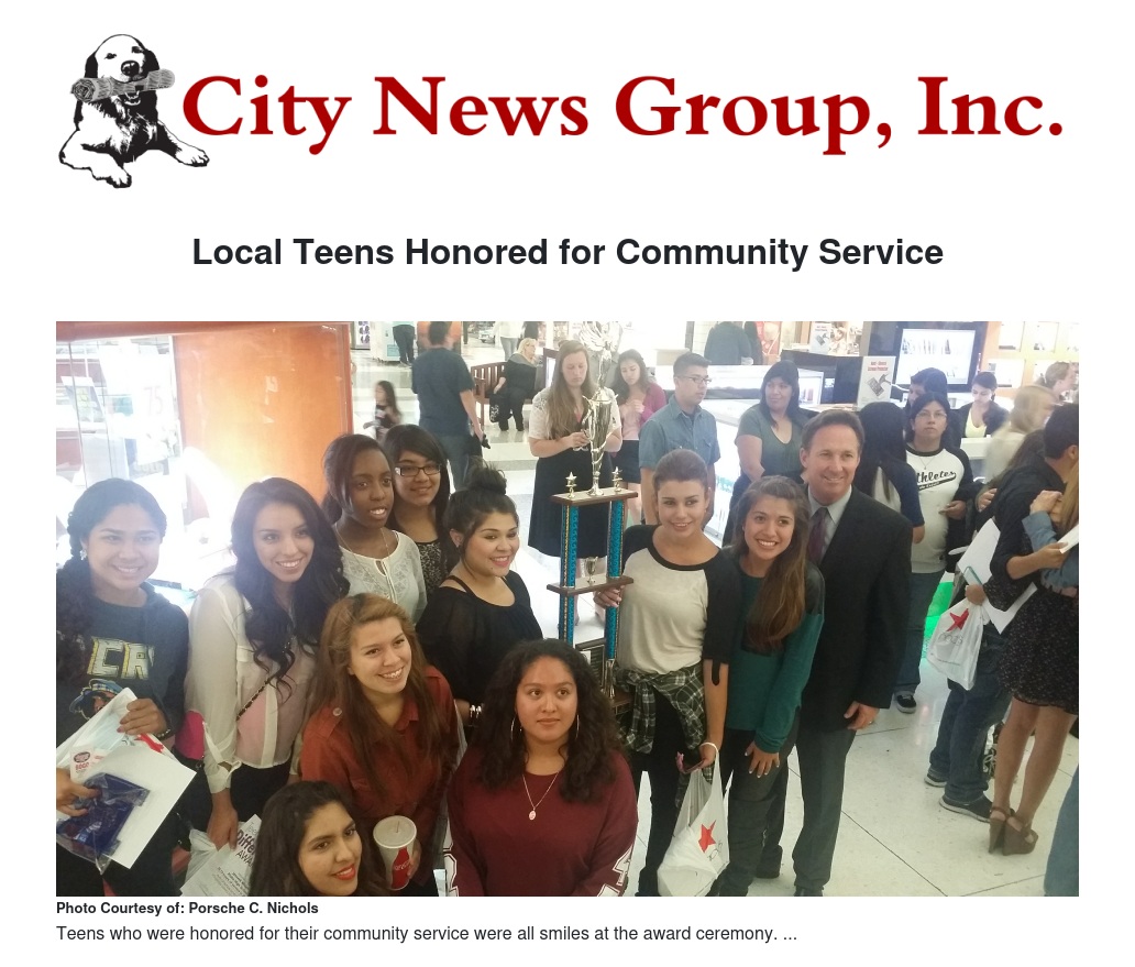 Recently, the Teens Make A Difference Awards Ceremony took place at Inland Center Mall. The ceremony recognized local high school students for their outstanding volunteer service at community places such as libraries, hospitals, schools, nonprofits and community based organizations.