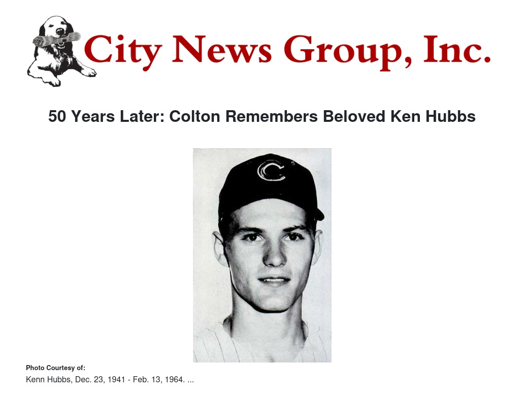 Ted Housely, who was on the 1956 LL Baseball All Stars team in Colton and is currently involved in the Ken Hubbs Foundation, can still remember playing baseball with Hubbs. "I am so thankful that I lived during this time when I witnessed first hand one of the best athletes at Colton High," said Housely. "I best remember Ken as a caring person who always had time to say hi and would ask, how ya doing."