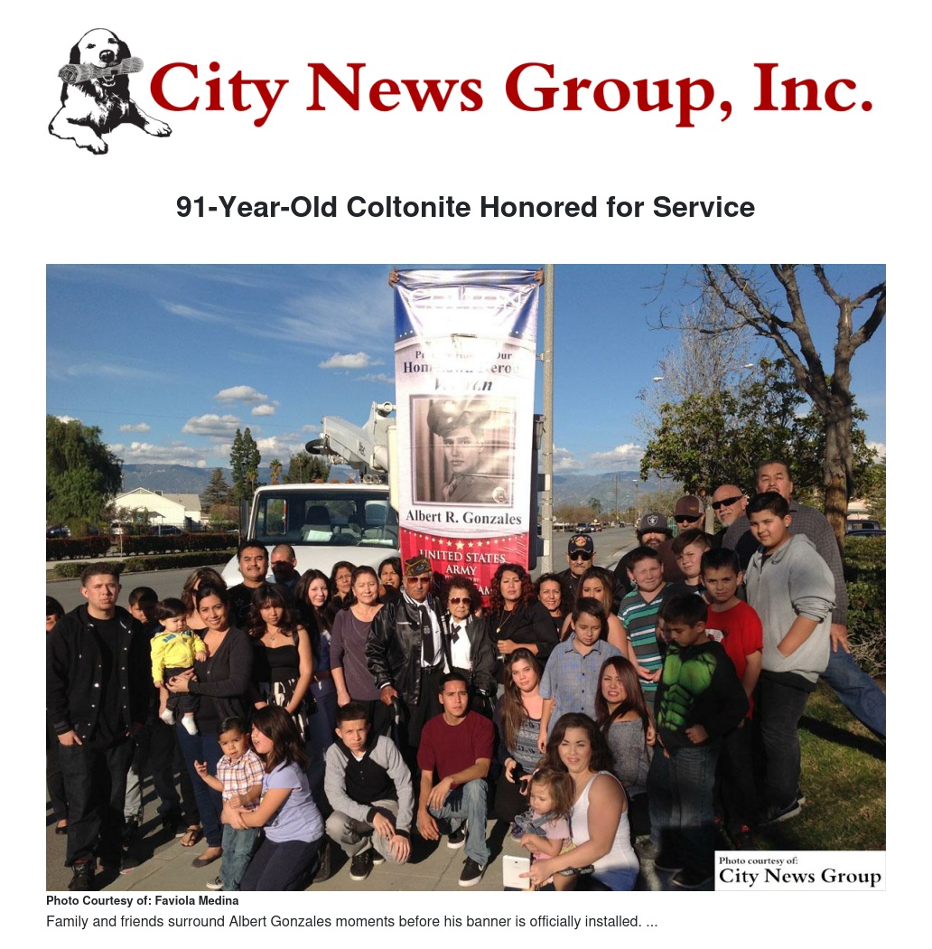 91-year-old Coltonite Albert Gonzales was honored with a military banner installation ceremony this year, in which over 30 of his friends, family and loved ones gathered to celebrate by his side.