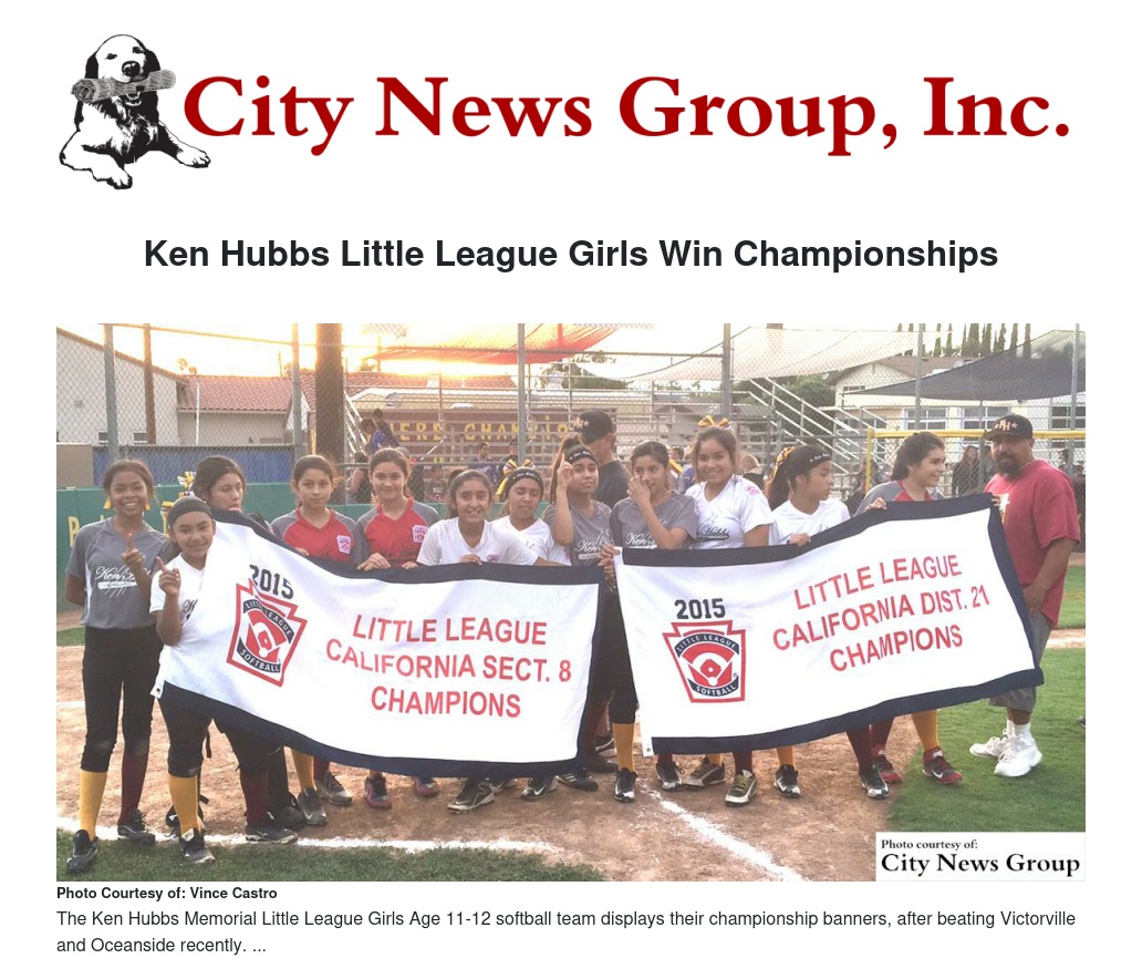 The Ken Hubbs Little League: 11-12 year-old girls softball team represented their Colton pride as they were named the 2015 District 21 Champions and the 2015 Section 8 Champions on Tuesday, July 14.