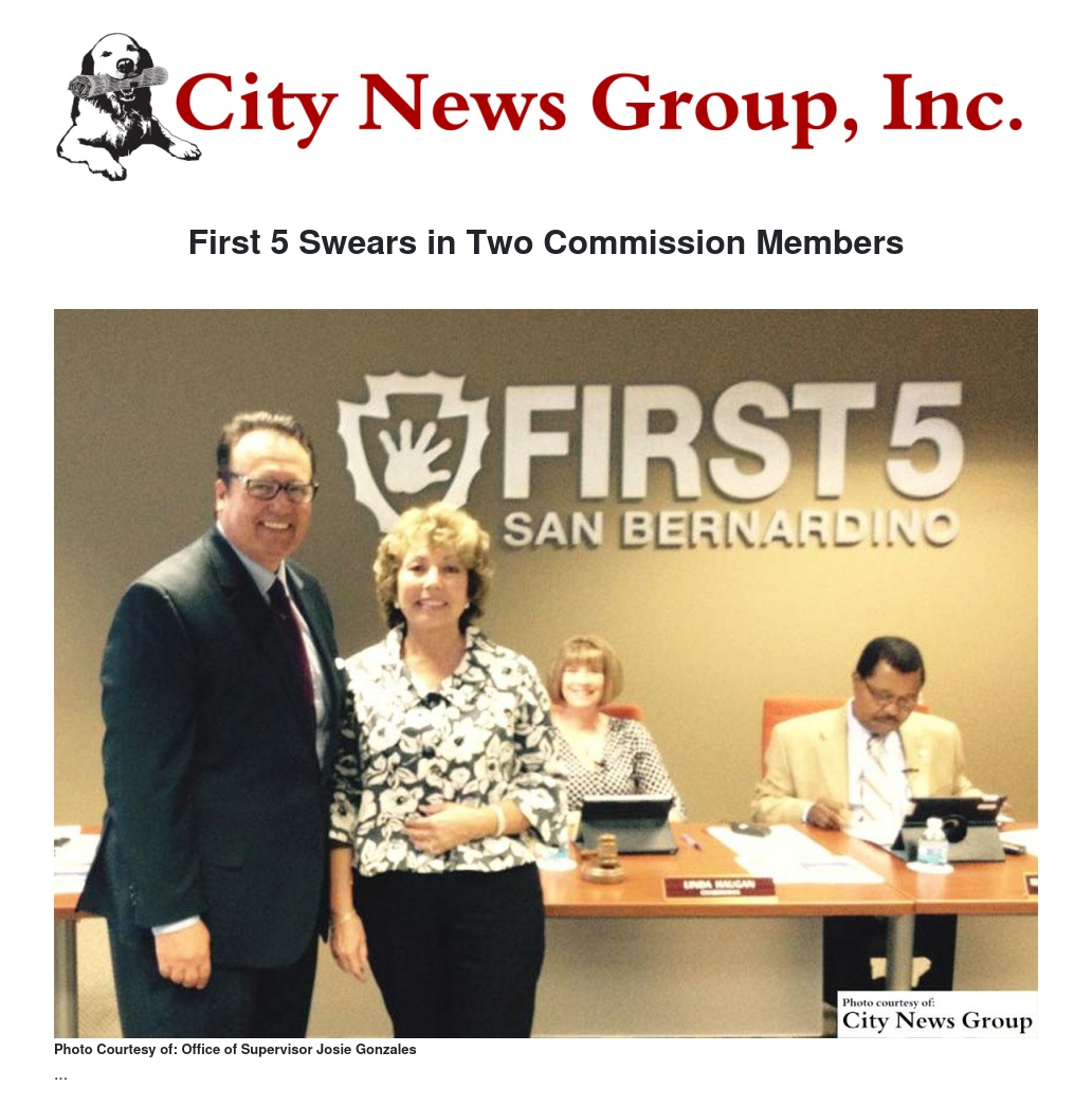On Feb. 4, San Bernardino County Supervisor Josie Gonzales and Paul Vargas, a board member with Oxford Preparatory Academy, were sworn in as First 5 San Bernardino Commission members. First 5 San Bernardino works to promote, support and improve the early development of children from the prenatal stage to five years of age under the guidance of the Children and Families Commission for San Bernardino, and in collaboration with the community and agencies providing services to children.