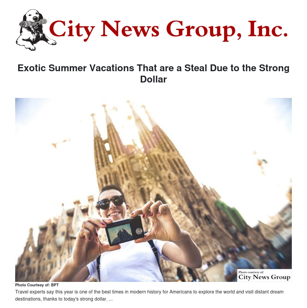 Exotic locations like Bali, Rome and Sydney might be at the top of your bucket list, but this year experts say they should also be at the top of your summer vacation list. Today's unusually strong dollar is allowing you to get a lot more for your money when you travel abroad. Travel experts say this year is one of the best times in modern history for Americans to explore the world and visit distant dream destinations.