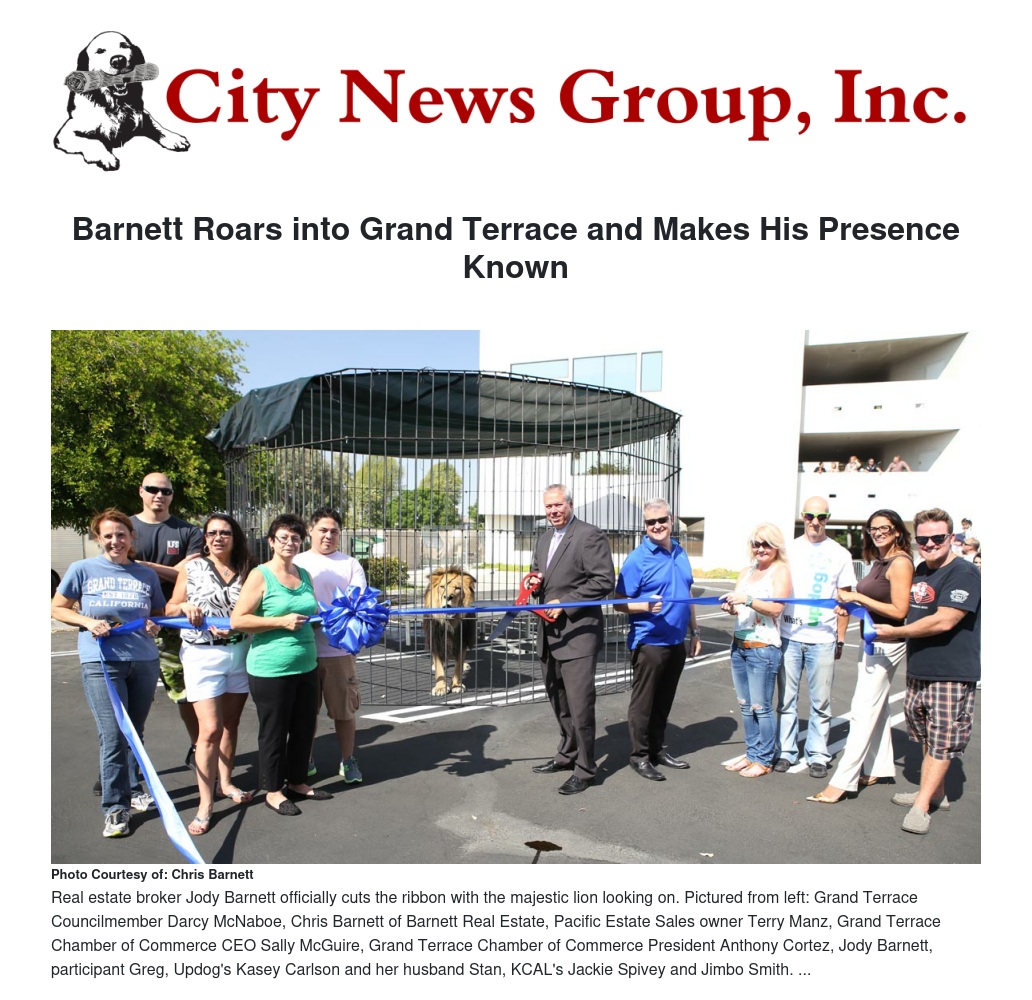 This last Sunday, Grand Terrace had a roaring good time thanks to Jody Barnett, owner of Barnett Real Estate, who brought a grand opening like Grand Terrace has never seen.