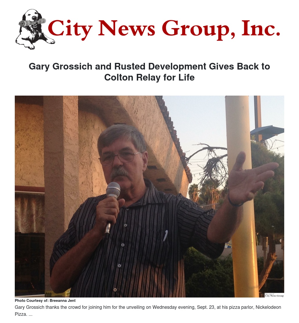 Gary Grossich and Rusted Development Gives Back to Colton Relay for Life