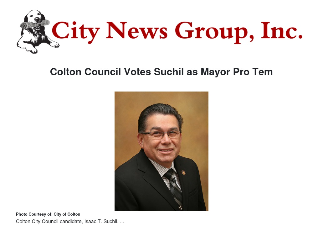The Colton City Council voted Isaac Suchil as the city's newest mayor pro tem during a council reorganization at the regular meeting on Jan. 21 to succeed David Toro in the role.