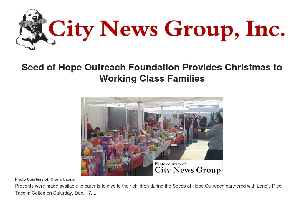 COLTON>> Seeds of Hope Outreach partnered with Leno’s Rico Taco in Colton on Saturday, Dec. 17 to bring Christmas to those in needs.