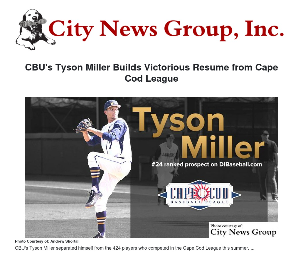 After a dominant summer campaign in the prestigious Cape Cod League, buzz is building about California Baptist University's Tyson Miller.