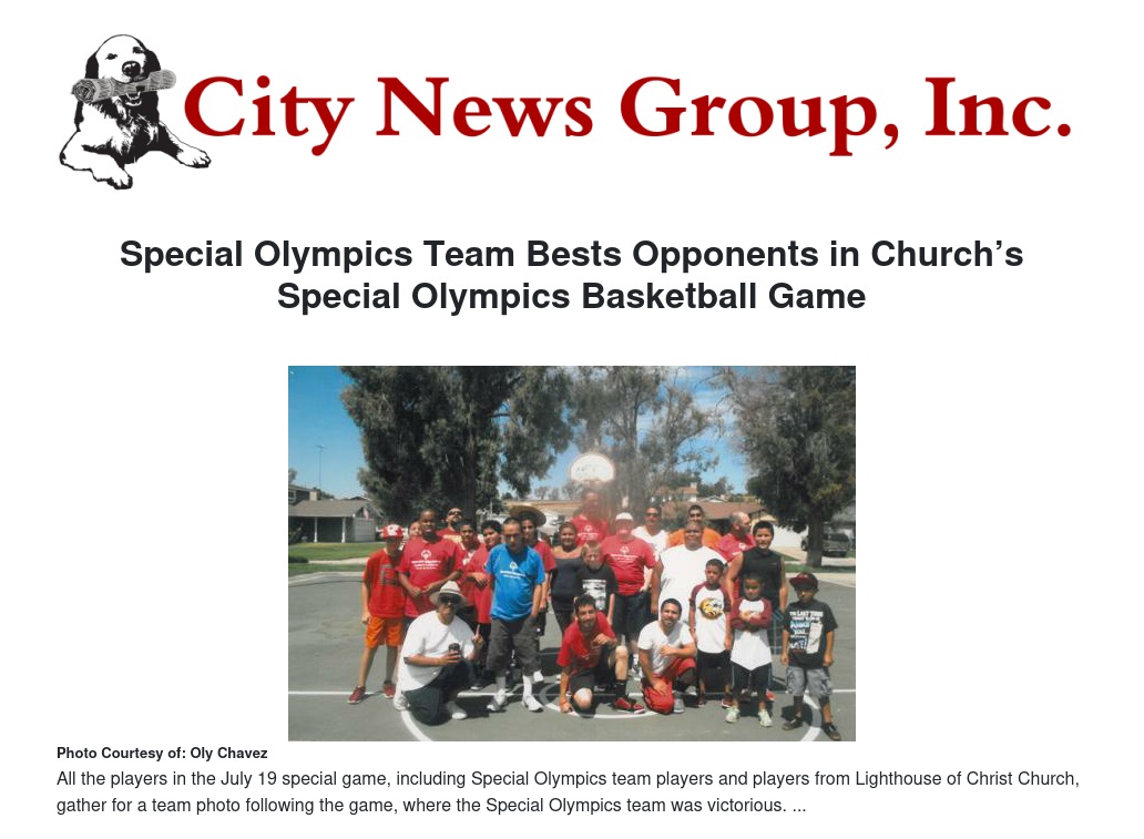 A Special Olympics team comprised of Lighthouse of Christ Church’s own Michael Cimental, 22, and other San Bernardino area residents living with disabilities “dominated” the game while church and family members cheered them on during the Lighthouse of Christ Church’s first Special Olympics game on July 19 at Elizabeth Davis Park in Colton, said pastor Oly Chavez.