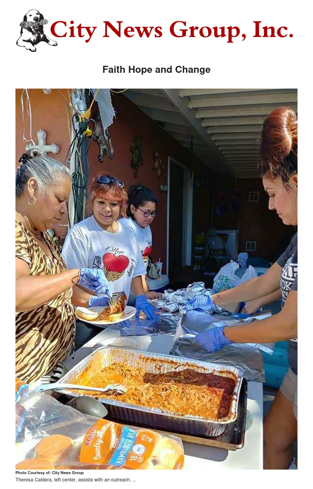 Faith Hope and Change is a non-profit organization that was started in April 2019 by Theresa Caldera and Senovia Medina. The two met when Caldera was volunteering through another non-profit organization in San Bernardino that fed the homeless.