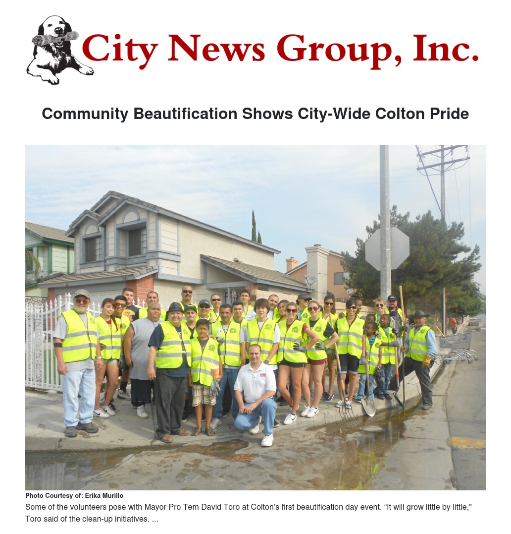 Toro explained, “It’s something to unite on. I was very proud of the people in the surrounding neighborhood and group organizations that came out to help clean up and beautify the area. It shows that 'Colton Pride is City Wide' and people in Colton care about their town."
