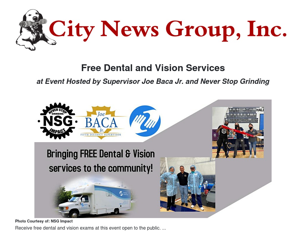 “Dental and vision health is pivotal to the quality of our lives and to our individual health," said Supervisor Joe Baca Jr. "Being able to spread the word and assist those who would appreciate this free event is something I am more than ecstatic to do. Considering the recent surge of COVID-19 in our county, we will also be providing rapid COVID-19 tests to be performed before each appointment. All CDC and COVID-19 guidelines will be followed. We cannot wait to have a lot of the community come out and receive necessary dental and vision services at no cost. Again, I would like to thank Darious Harris and all at NSG for their constant support to San Bernardino County.”