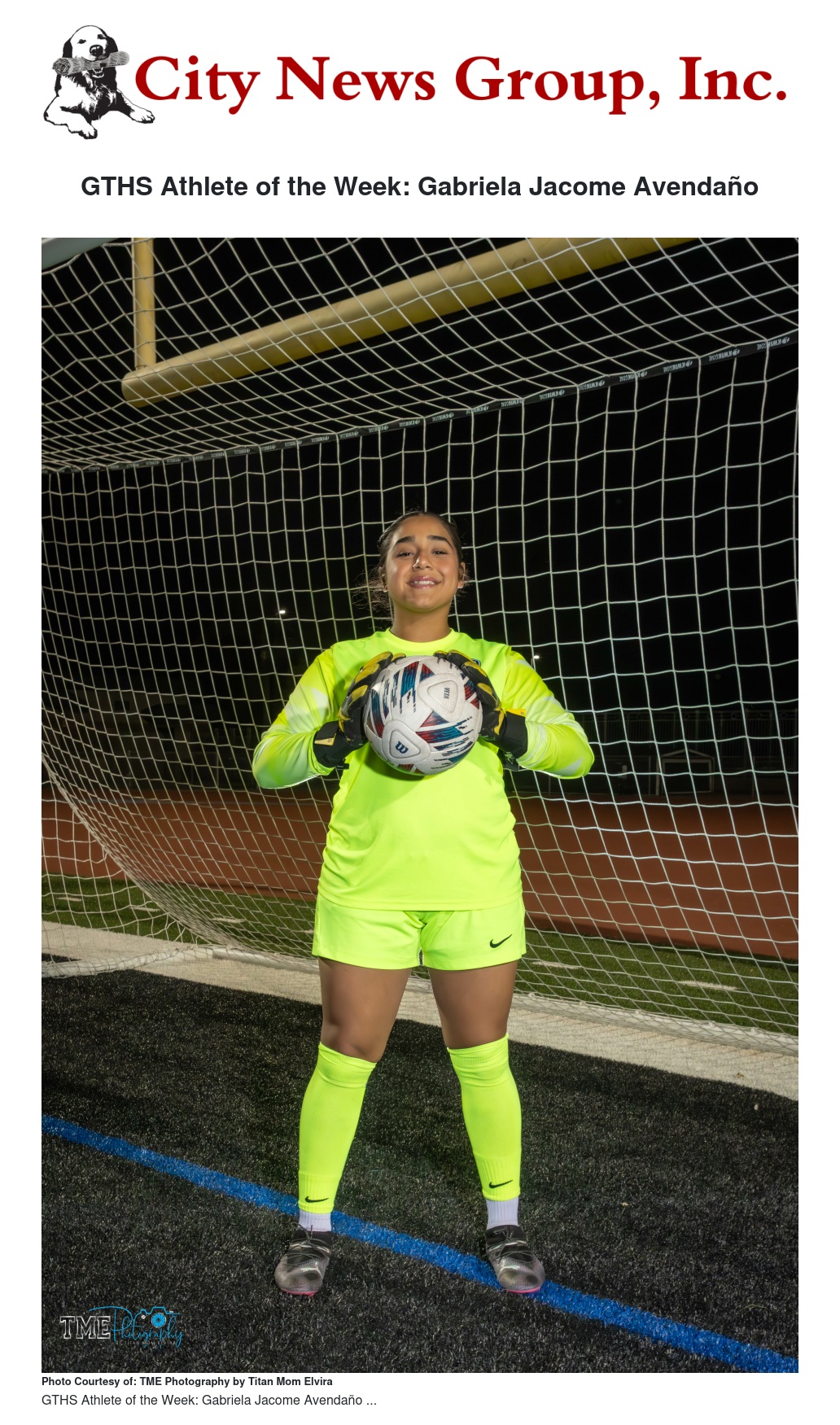 GTHS Athlete of the Week: Gabriela Jacome Avendaño by Titan Mom Elvira - City News Group, Inc.