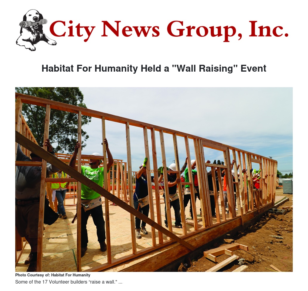 Mayor McNaboe said "The Habitat wall raising not only signified considerable progress on a project that has languished since the City Redevelopment Agency provided the land in 2011, it served as a great team building experience for those who participated. I enjoyed having the opportunity to work alongside Grand Terrace Lions Club members, Habitat staff, the Habitat families, members from Living Word Inland Empire, as well as employees of the day's sponsors Wells Fargo Bank and Bank of America. What a wonderful way to build community and welcome two families to the City."