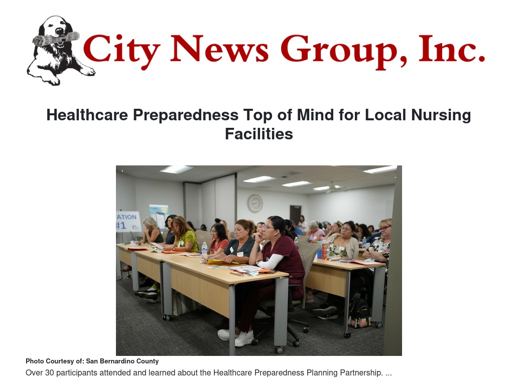 The Department of Public Health’s Healthcare-Associated Infections and Infection Prevention (HAIIP) program collaborated with the Inland Counties Emergency Medical Agency (ICEMA) and the California Department of Public Health (CDPH) to provide emergency medical response information and environmental services training to skilled nursing facilities (SNF) and long-term care facilities (LTCF) infection preventionists and environmental service managers.