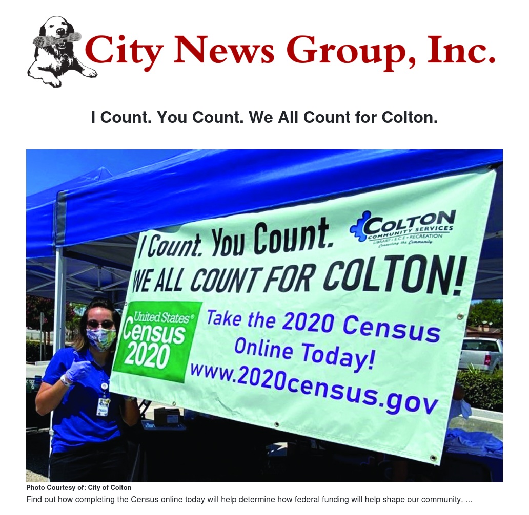 I Count. You Count. We All Count for Colton. Complete the 2020 Census online today at www.2020Census.gov