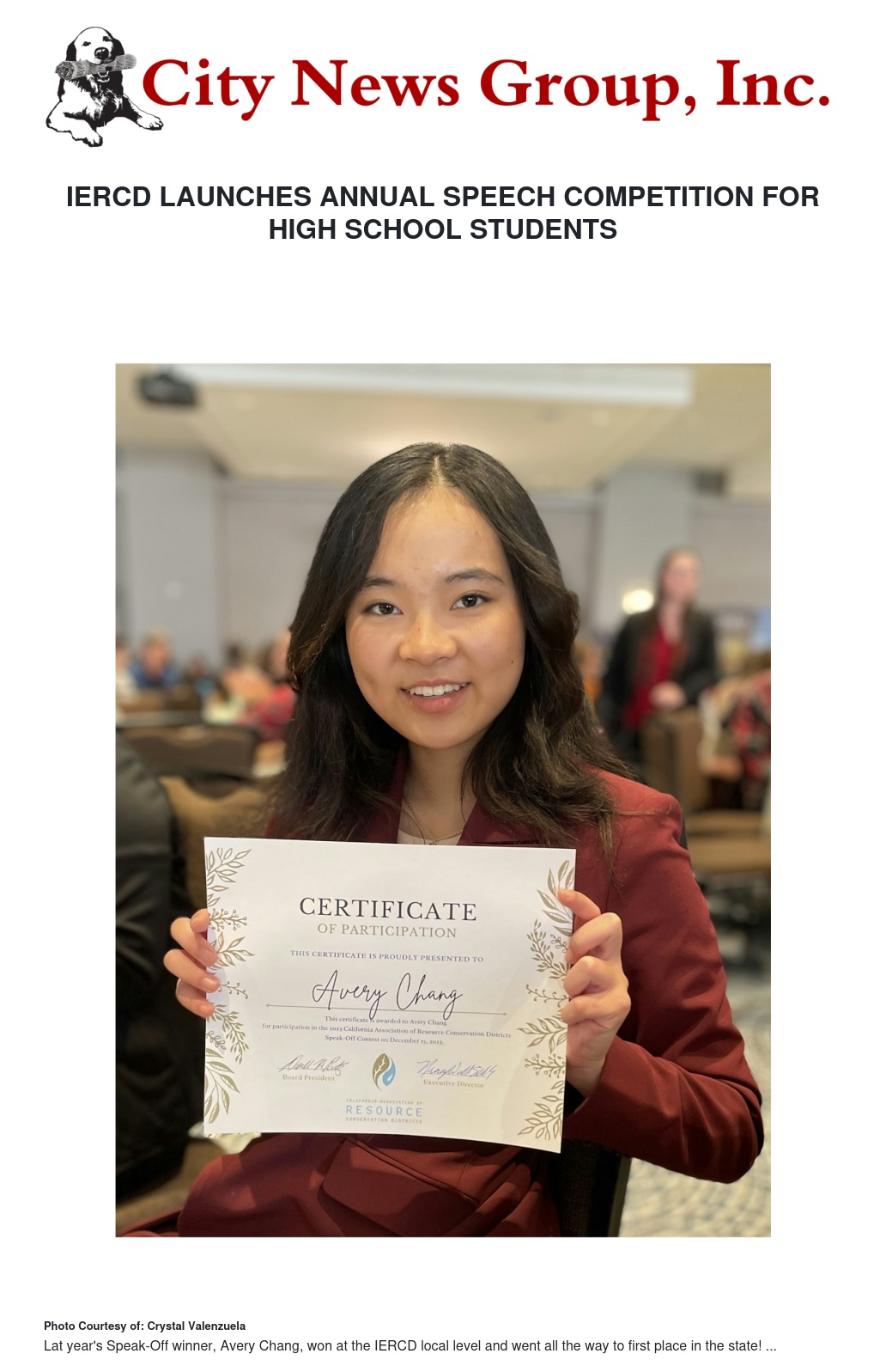 The regional winner will advance to the state contest, held in person on December 12th at the California Association of Resource Conservation Districts' Annual Conference in Sacramento. IERCD will cover all travel expenses for the regional winner and their chaperone to attend, giving them the unique opportunity to immerse themselves among conservation professionals and compete against other top students from across the state. The top three students at the state level will take home additional cash prizes.