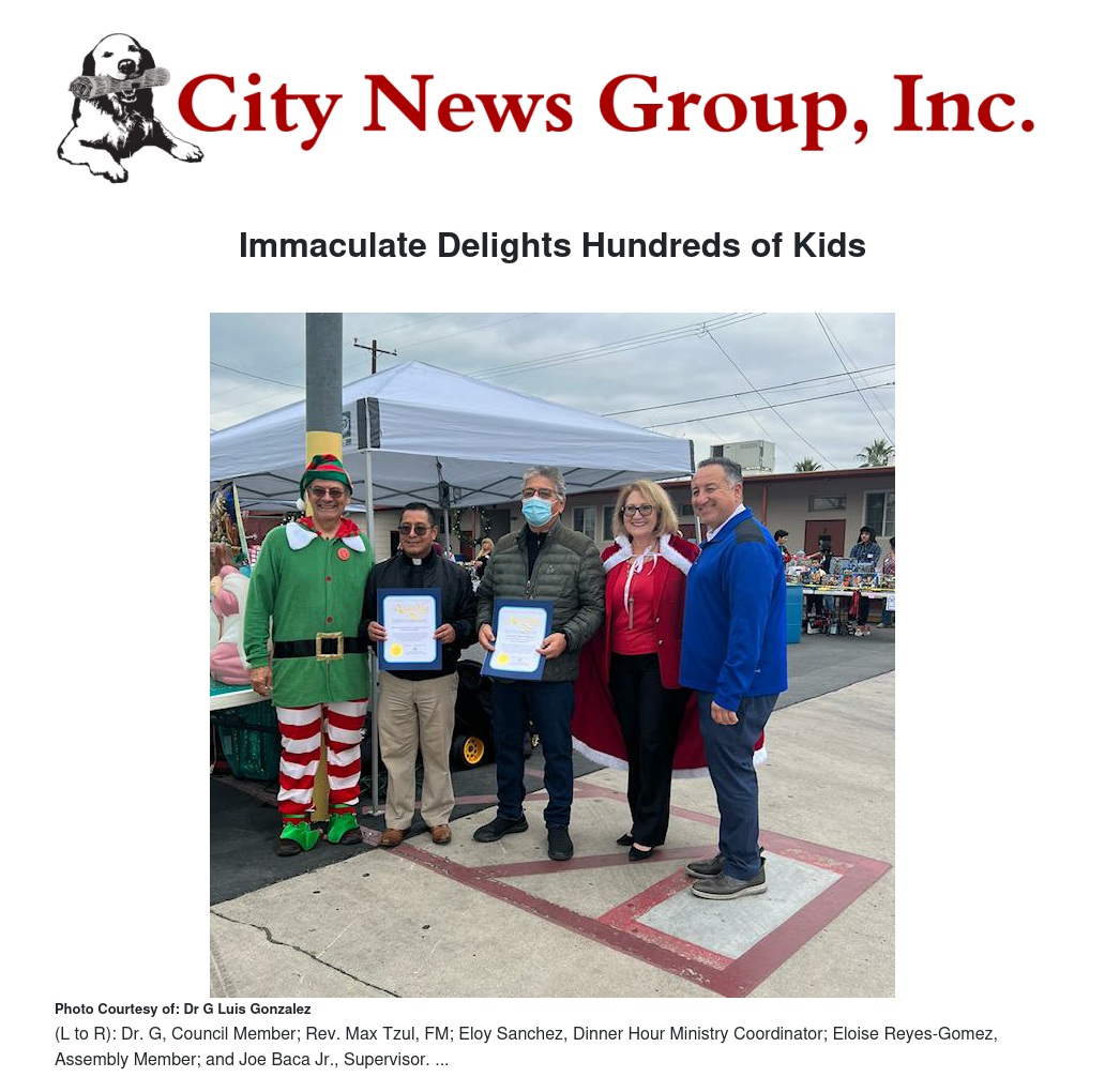 Now in its 34th year under the direction of Eloy Sanchez, Coordinator of the Dinner Hour Ministry, all eyes and smiles were on the fabulous Toy Give-A-Way last Saturday at the Immaculate Conception Church