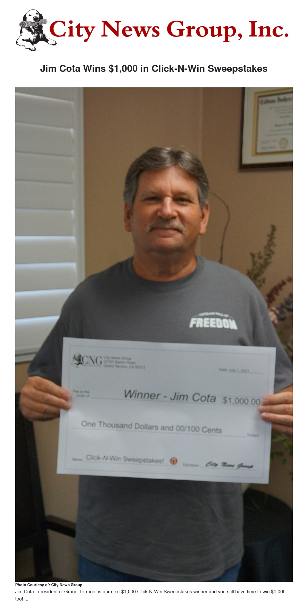 “I told a buddy of mine, he lives in Corona [about the sweepstakes] and he said, ‘why do you bother with that stuff’ and I said because it’s not just because I’m trying to win but it’s because I’ve read this thing since I moved here pretty much and it’s a contest, it only takes a minute, just you never know- Now look at this,” Cota smiled as he looked at his $1,000 check.