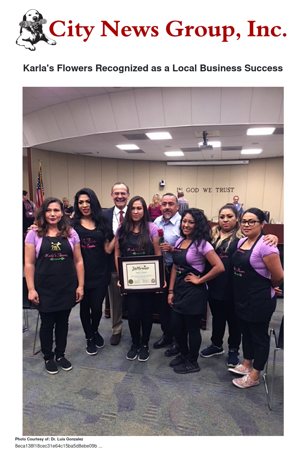 Karla's Flowers Recognized as a Local Business Success by Dr. Luis Gonzalez - City News Group, Inc.