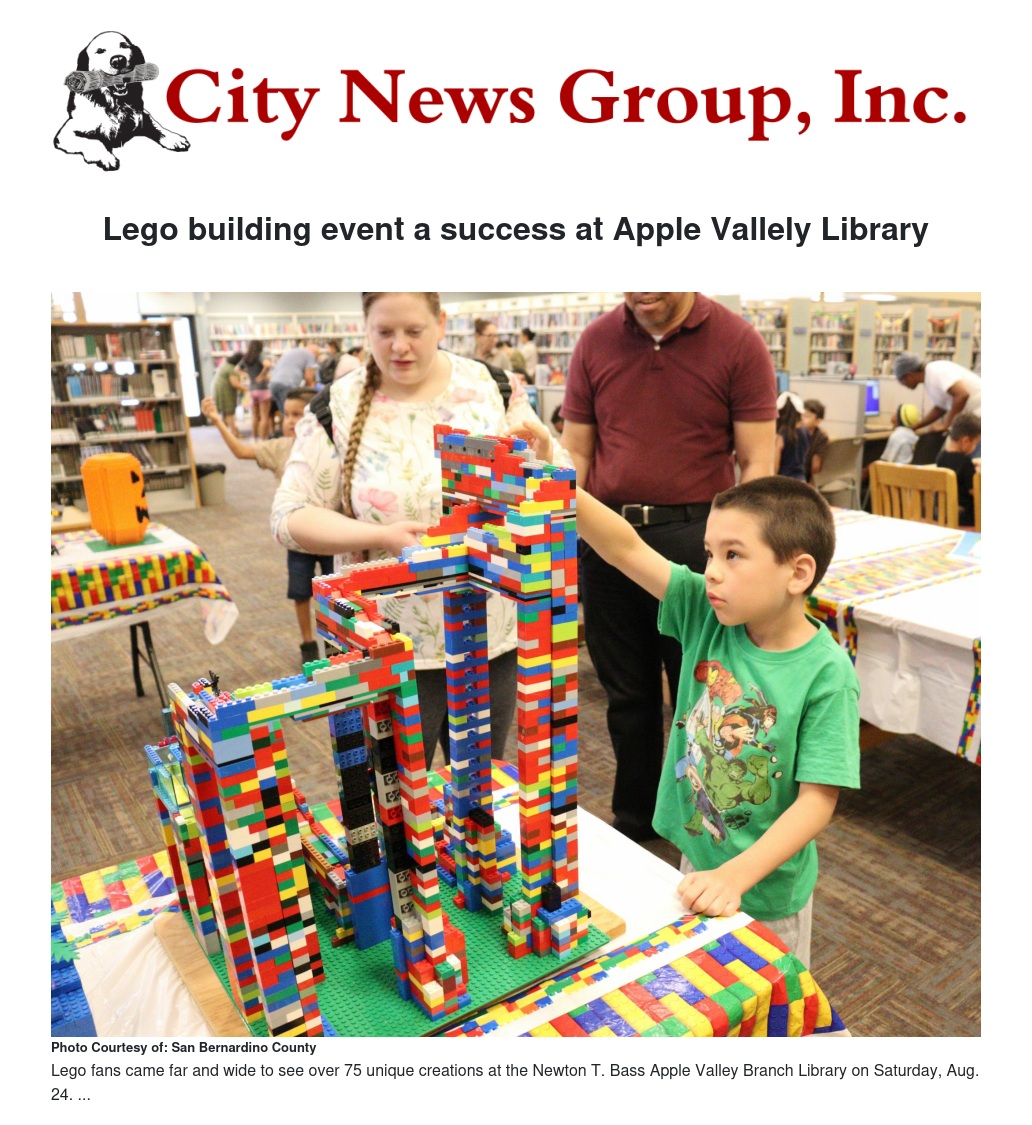 Lego building event a success at Apple Vallely Library by Stella Pierce - City News Group, Inc.