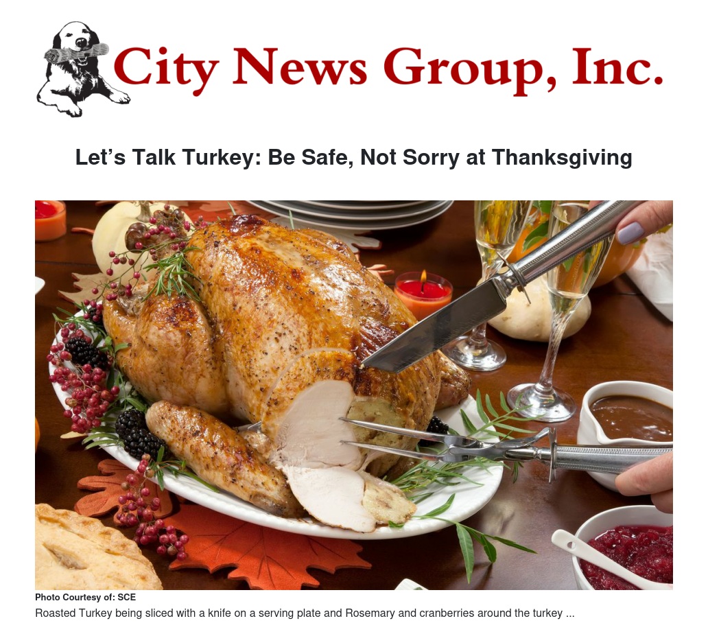 It is among the reasons Southern California Edison joins fire departments nationwide in urging caution and preventive measures on a day 46 million turkeys will be eaten and fires and electrical hazards lead to an average of five fatalities, 25 injuries and $26 million in property damage.