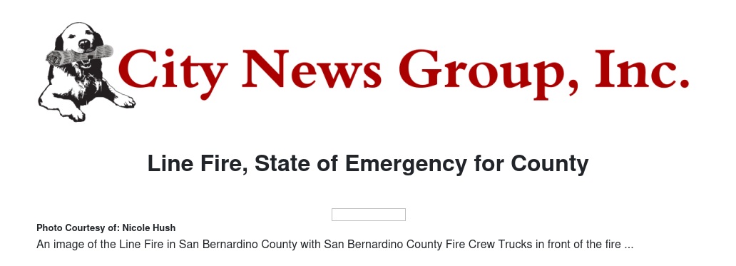 On Saturday, San Bernardino County proclaimed the existence of a local emergency in response to the Line Fire. Later in the day, California Gov. Gavin Newsom proclaimed a State of Emergency in San Bernardino County. Both actions make San Bernardino County eligible for state and federal assistance in responding to and recovering from the fire.