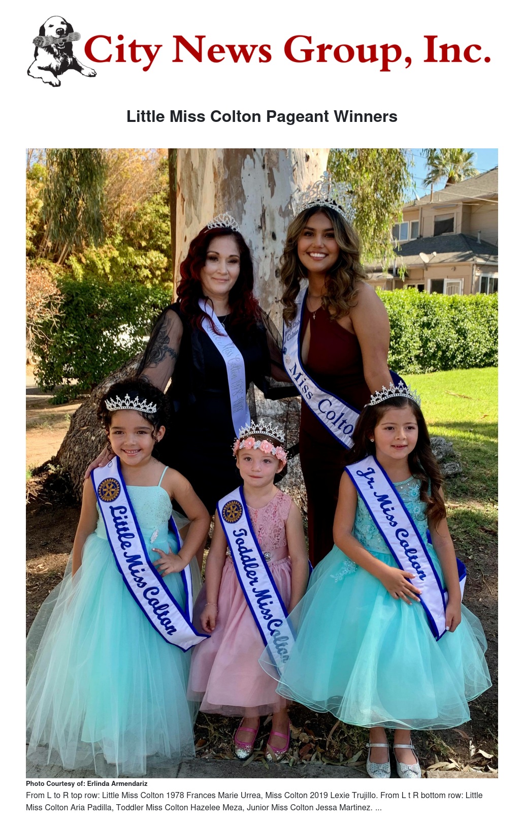 On September 12, 2021 the Rotary Club of Colton held the Little Miss Colton Pageant, crowning 3 of Colton’s finest as Toddler, Little and Jr Miss Colton. On Hand to crown the new queens of Miss Colton 2019 - Lexie Trujillo and Little Miss Colton 1978 – Frances Marie Urrea.